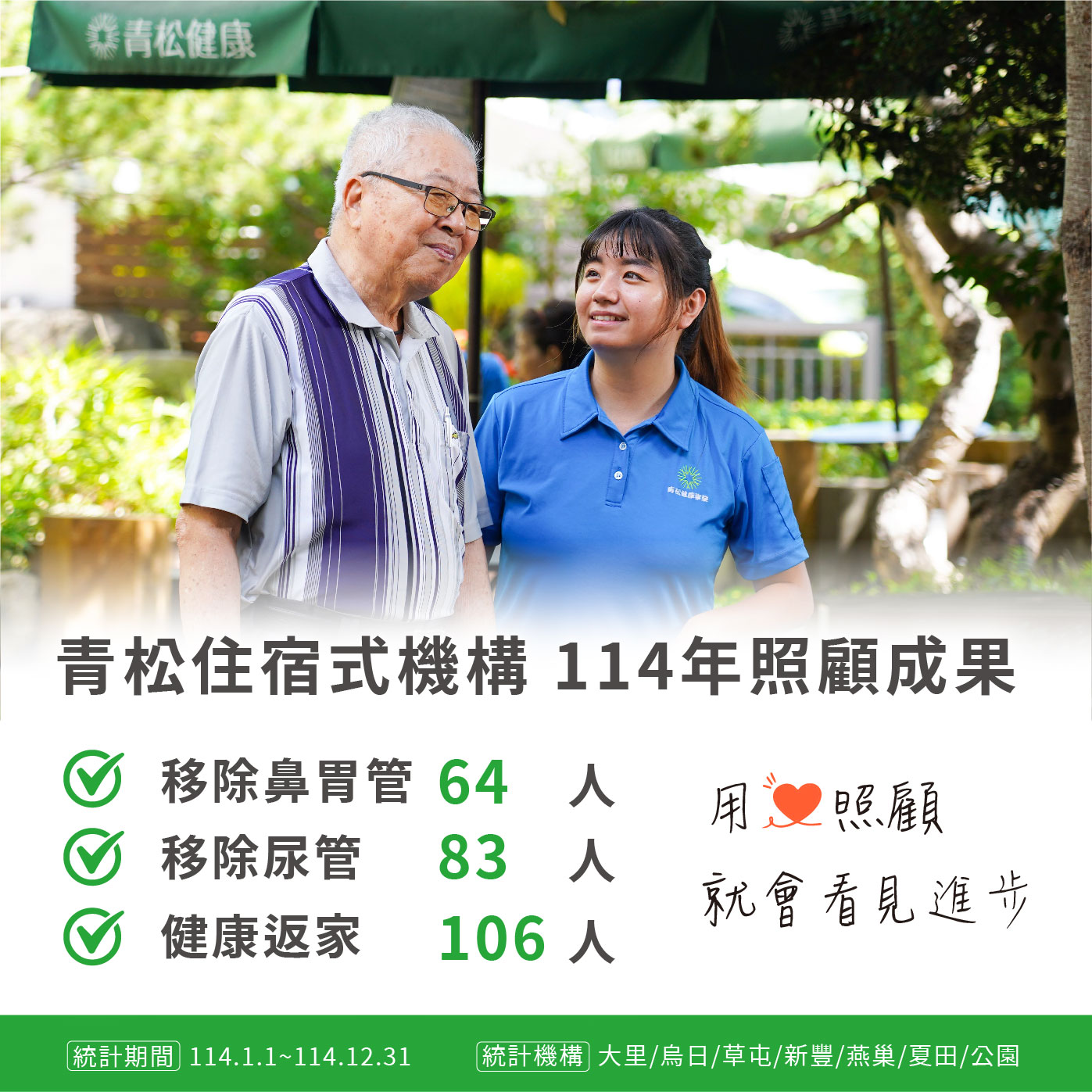 青松住宿式機構在114年,持續創造最優質的照顧成果。