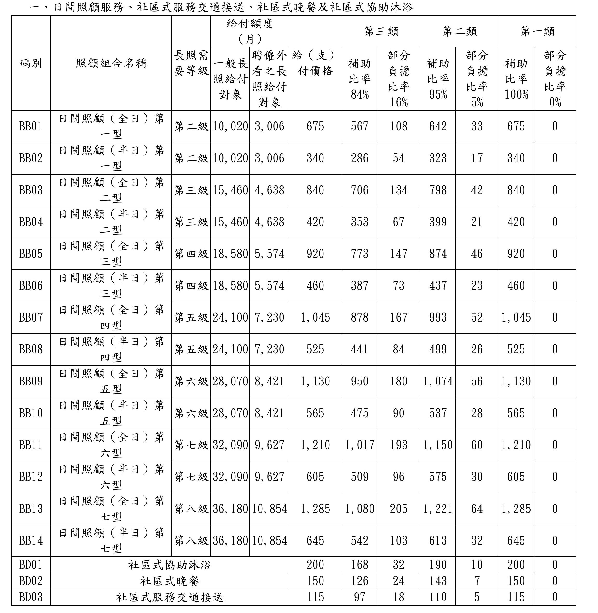 社區式服務-收費標準